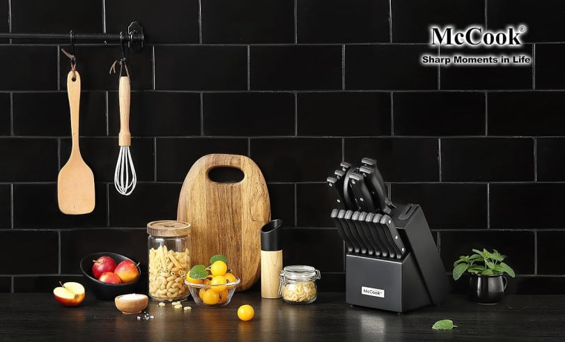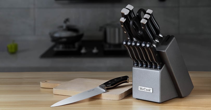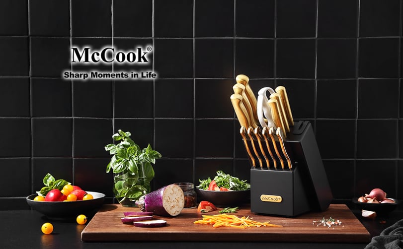 McCook knives are for people who actually cook. German steel that stays sharp, blocks with built-in sharpeners, and no-nonsense designs.